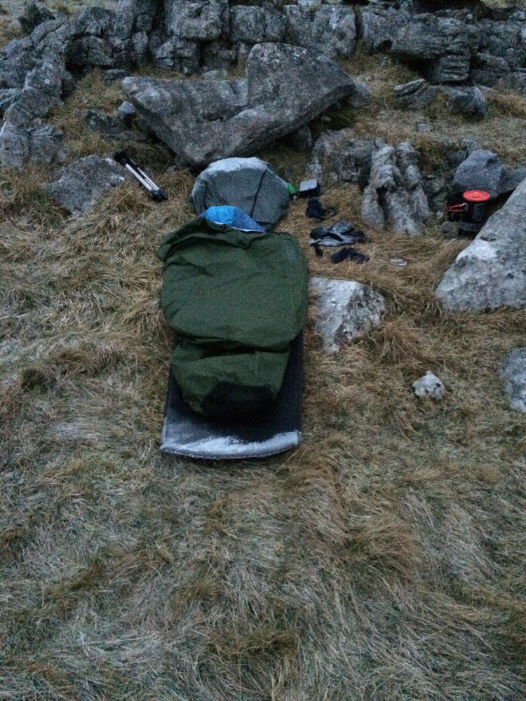 I woke up from my shivering slumber around 5am and took a moment to look around and take in the morning – the pink hue coming from over Ingleborough and the mist rolling up the valley.